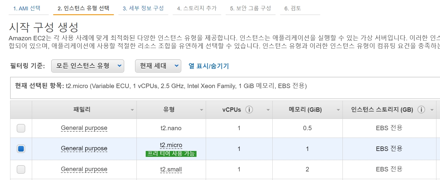 이미 생성되어 있는 인스턴스의 보안그룹을 선택하면 된다.