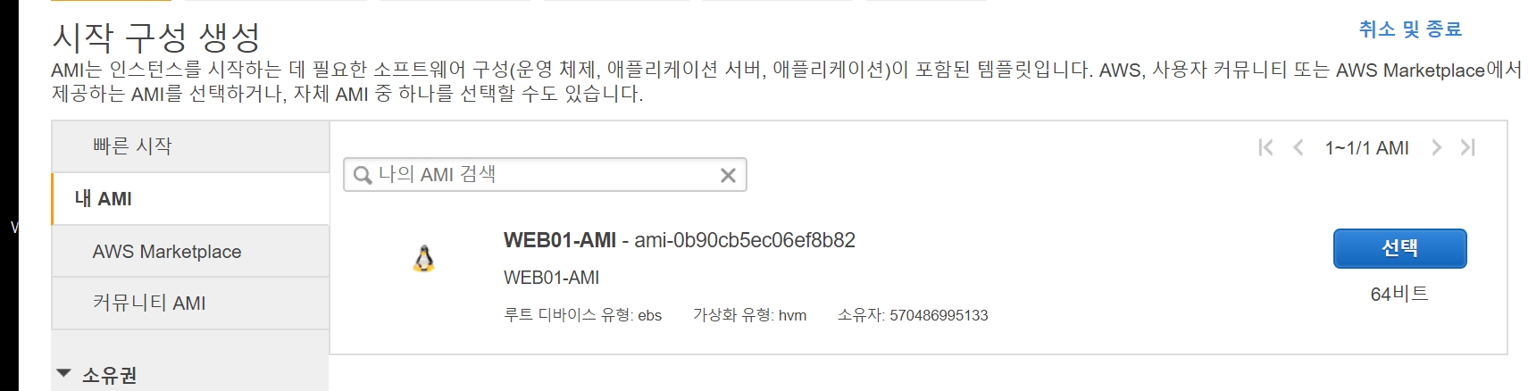 사전에 AMI를 만들어 놨다. Auto Scaling 시 자동생성되는 인스턴스르 AMI로 만들어 진다.