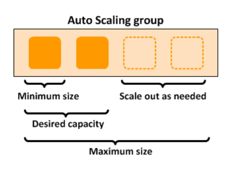 Amazon EC2 Auto Scaling를 통해 애플리케이션의 로드를 처리할 수 있는 정확한 수의 Amazon EC2 인스턴스를 보유하도록 보장할 수 있습니다. Auto Scaling 그룹이라는 EC2 인스턴스 모음을 생성합니다. 각 Auto Scaling 그룹의 최소 인스턴스 수를 지정할 수 있으며, Amazon EC2 Auto Scaling에서는 그룹의 크기가 이 값 아래로 내려가지 않습니다. 각 Auto Scaling 그룹의 최대 인스턴스 수를 지정할 수 있으며, Amazon EC2 Auto Scaling에서는 그룹의 크기가 이 값을 넘지 않습니다. 원하는 용량을 지정한 경우 그룹을 생성한 다음에는 언제든지 Amazon EC2 Auto Scaling에서 해당 그룹에서 이만큼의 인스턴스를 보유할 수 있습니다. 조정 정책을 지정했다면 Amazon EC2 Auto Scaling에서는 애플리케이션의 늘어나거나 줄어드는 수요에 따라 인스턴스를 시작하거나 종료할 수 있습니다.