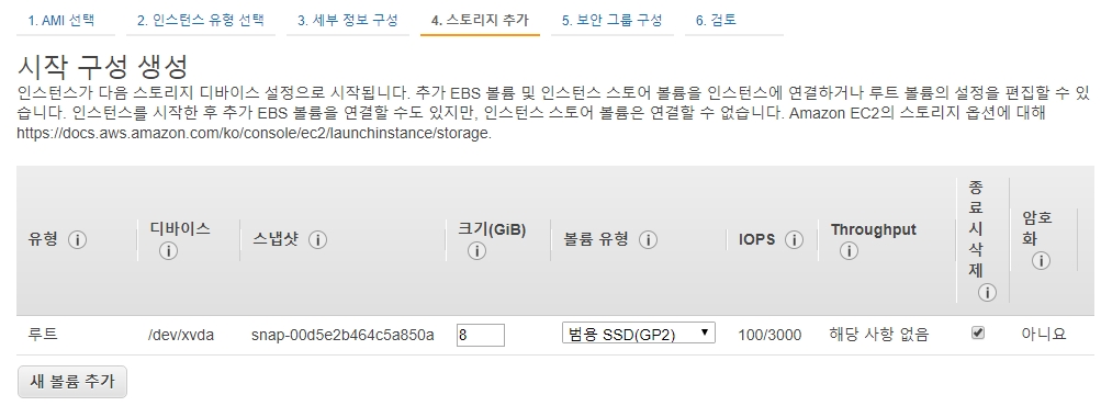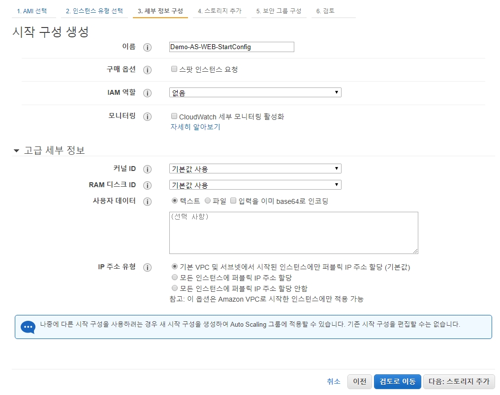 만약, 새로 생성되는 인스턴스에 User Data(사용자데이터)의 기능이 필요시 입력할 수 있다.