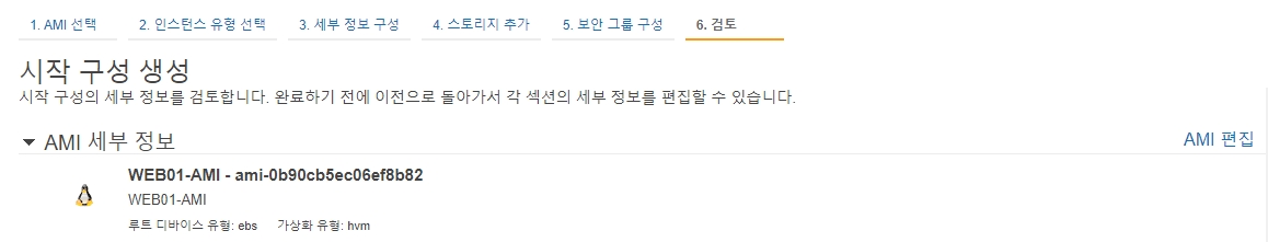 [Auto Scaling 그룹생성]을 클릭하면 단계별 구성을 확인 할 수 있다. 하단 우측 [시작하기]를 클릭한다.