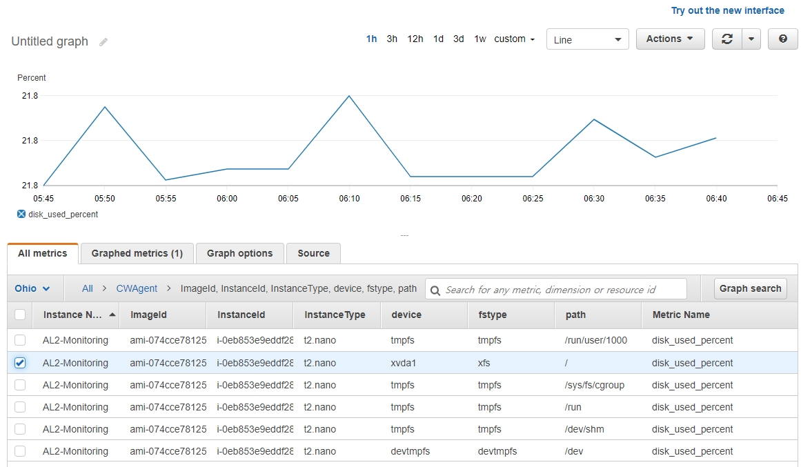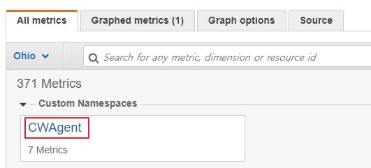 Cloudwacth > Metrics > All metrics > CWAgent 를 선택하자.